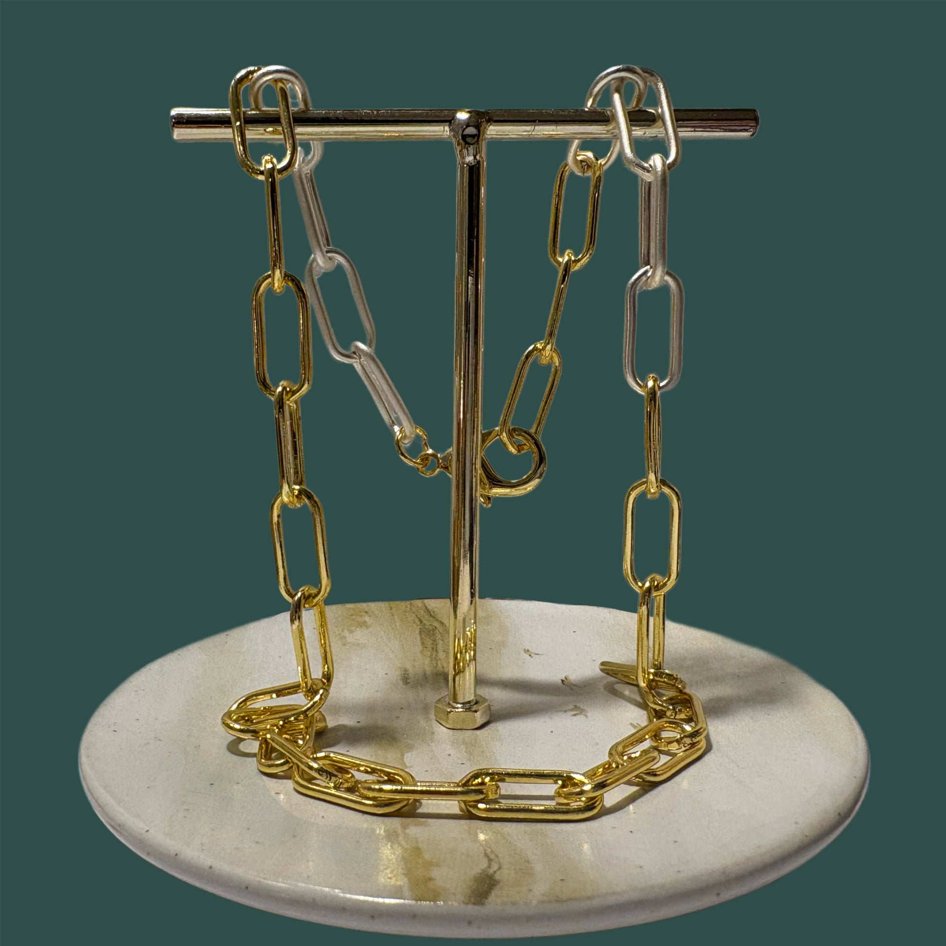 - Acero inoxidable bañado en oro y plateado