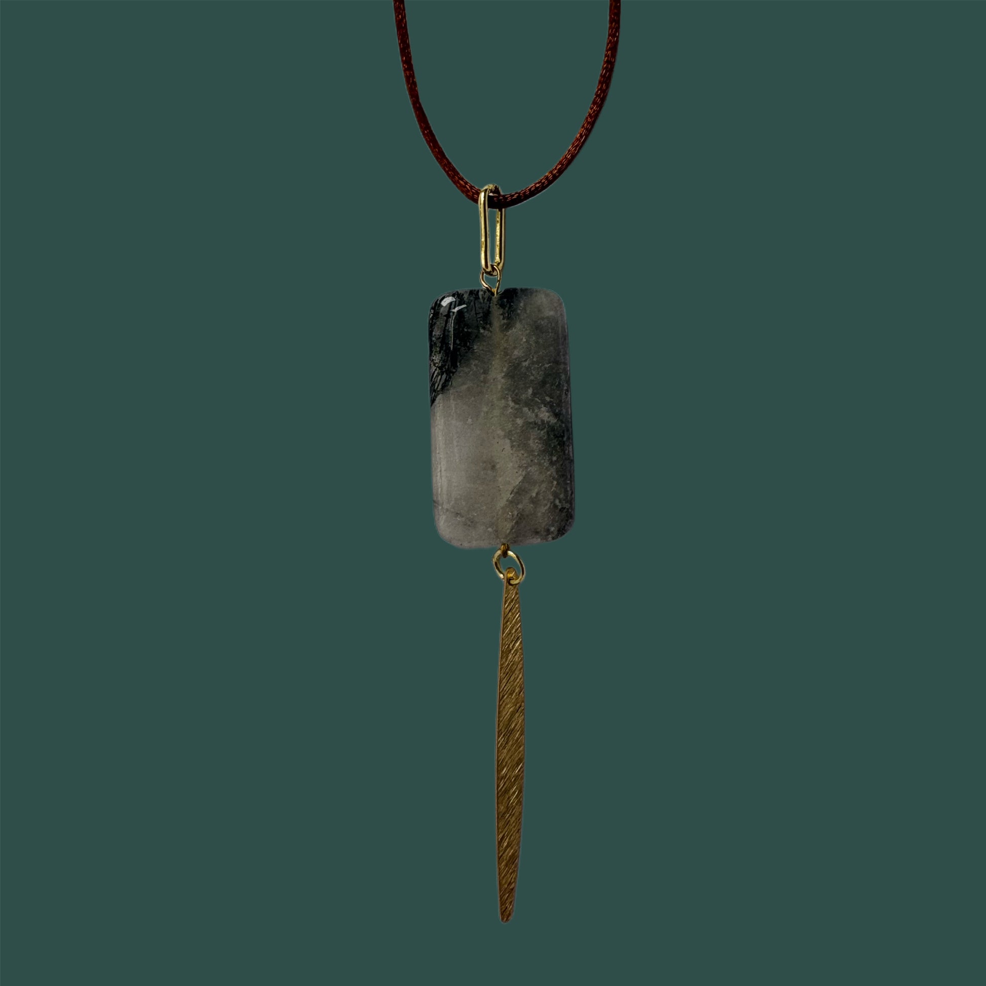 El collar Gamma combina piedras naturales con un delicado cordón sedado. Es una pieza hecha a mano, elegante y ligera.