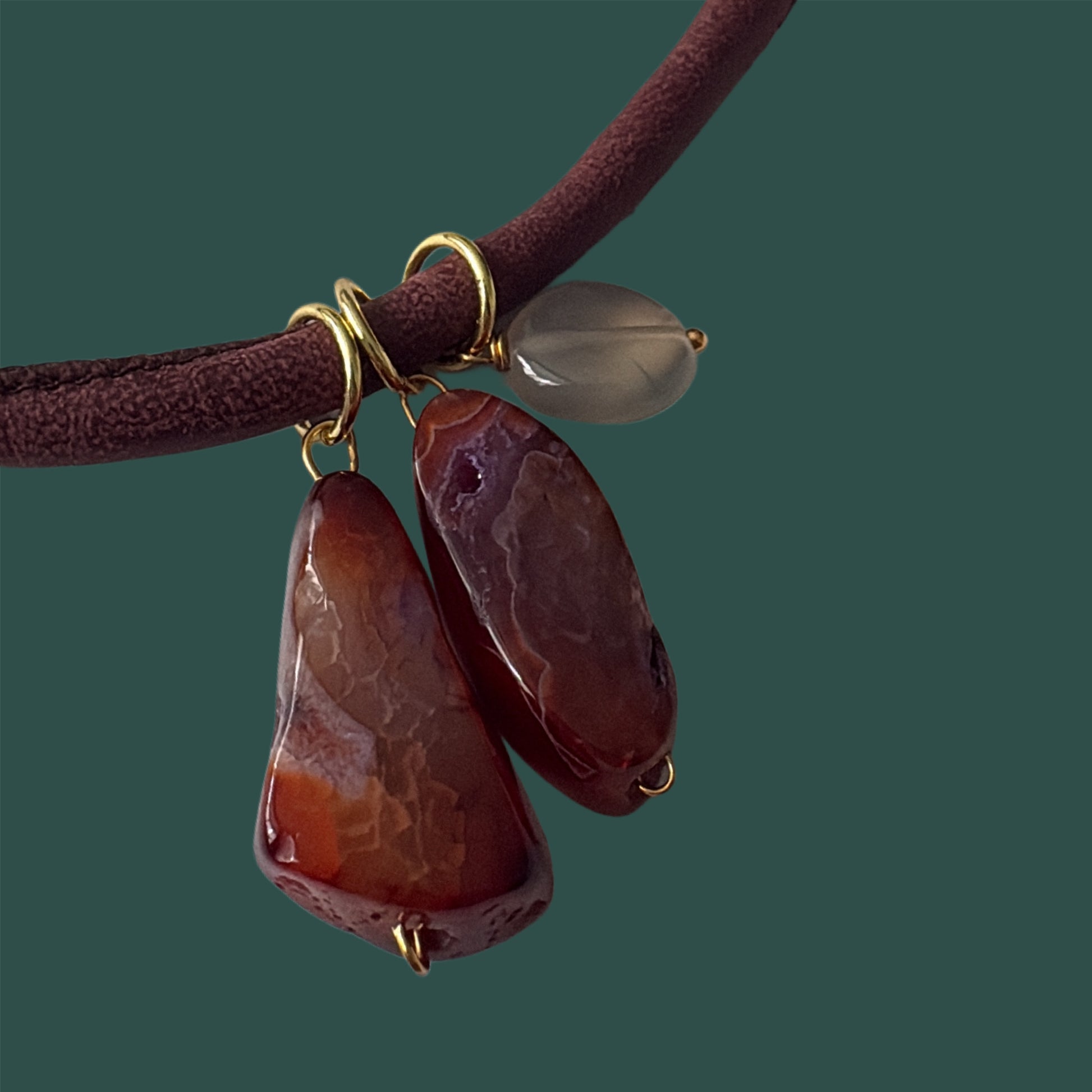 El collar Aura de ágatas craqueladas que resalta la textura única de cada pieza, simbolizando protección, energía positiva y transformación personal.