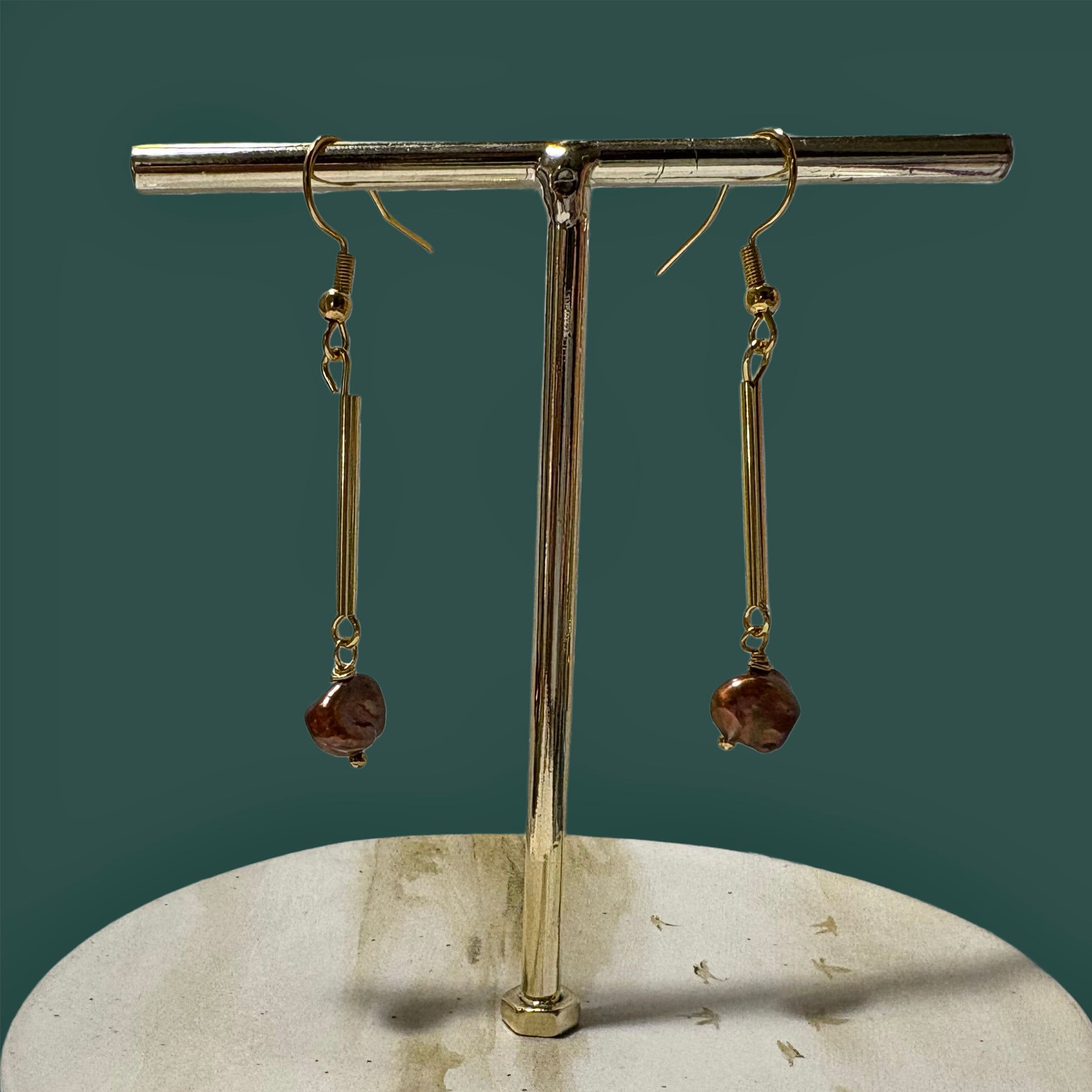 Los pendientes Centella combinan modernidad y elegancia dándole un toque de color con perlas rojas.