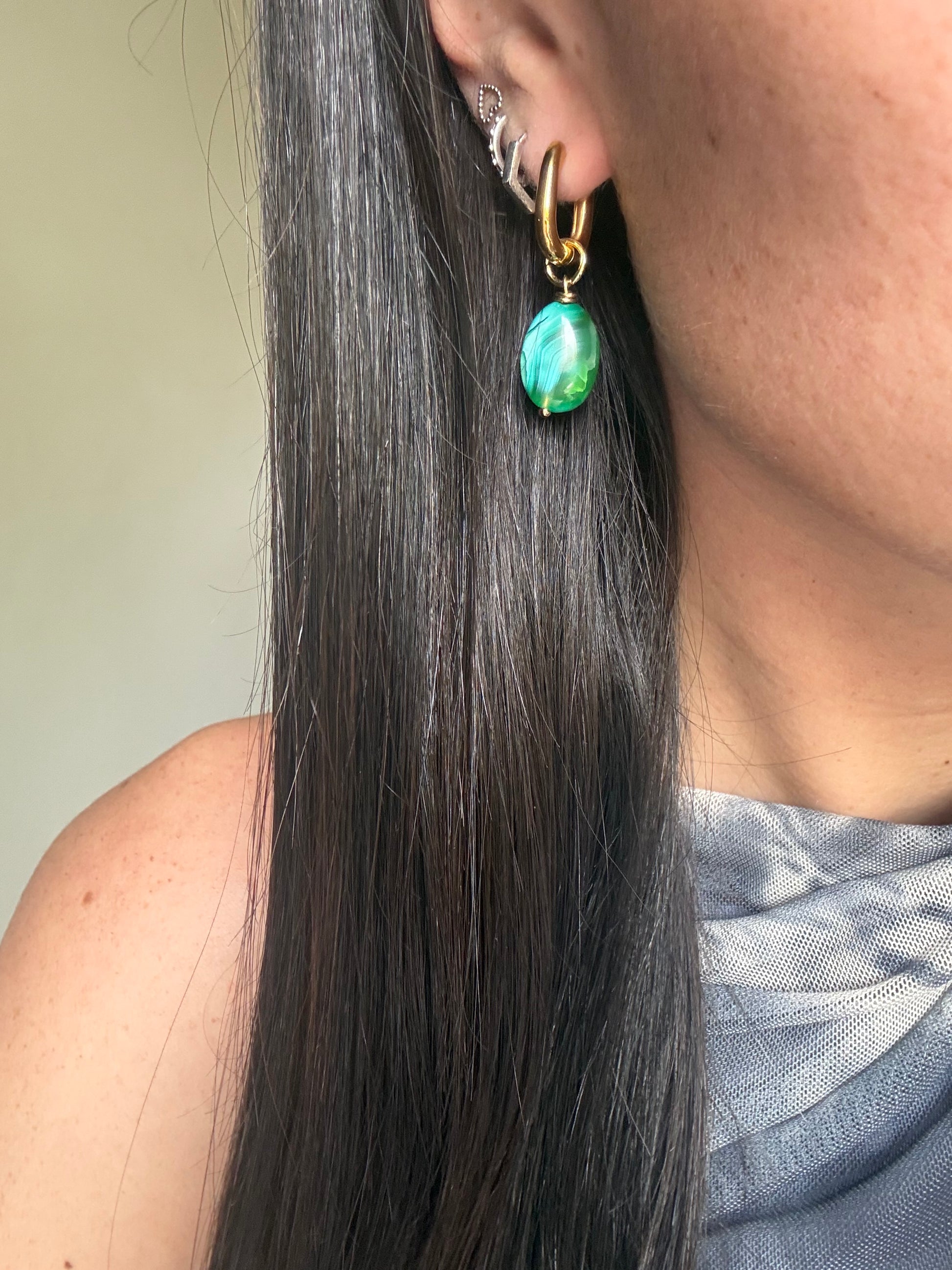 Advertencia: al tratarse de piedras naturales, cada pendiente es único; por lo tanto, ambos pueden diferir ligeramente en forma, color o vetas.